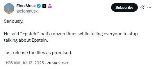 本月 8 日,在宣布成立"美国党"仅 3 天后,马斯克便就"爱泼斯坦案"抨击了特朗普,并确认"美国党"将把曝光"爱泼斯坦案"文件作为优先事项。他发帖称,"如果特朗普不公布爱泼斯坦相关文件,怎么能指望人们对他有信心?"